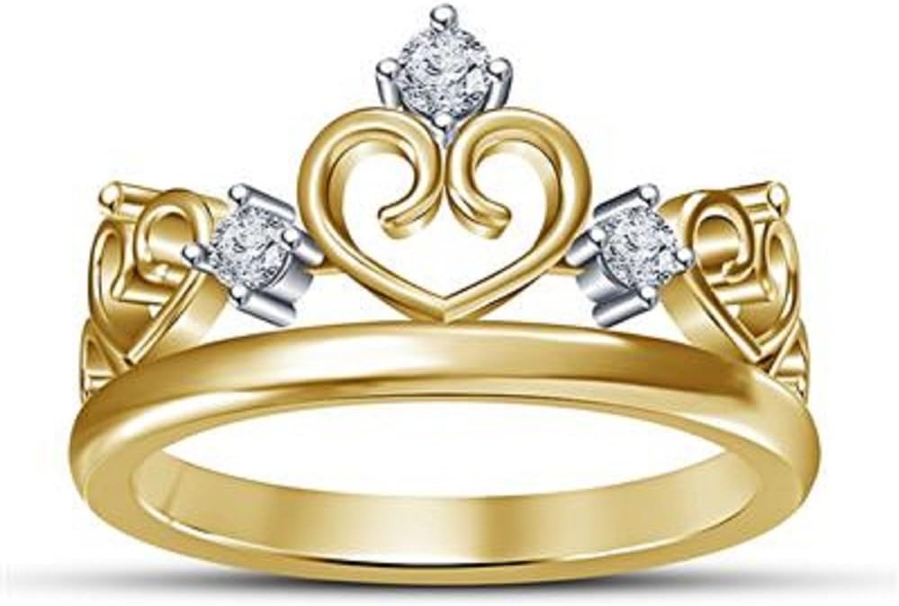 tusakha Anillo de Corona de Princesa de Compromiso Chapado en Oro de 14 Quilates con Diamante de