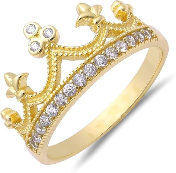 Amazon.com: Bluepistil Anillo de corona para mujer, diseño de princesa y reina chapado en oro de 18 quilates, anillo de tiara con circonita cúbica pequeña, regalo para niña, Metal, Zirconia cúbica : Ropa, Zapatos y Joyería