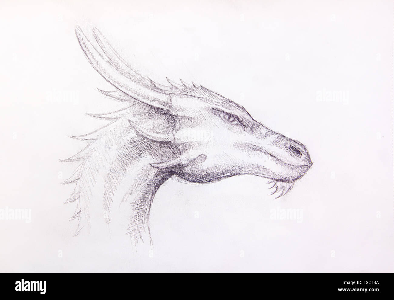 El dibujo de la cabeza de dragón en el papel. Retrato de perfil Fotografía de stock Alamy