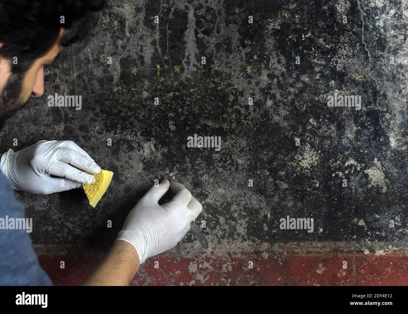 Una vista de la antigua Domus Aurea subterránea sitio (Casa de Oro), la opulenta villa