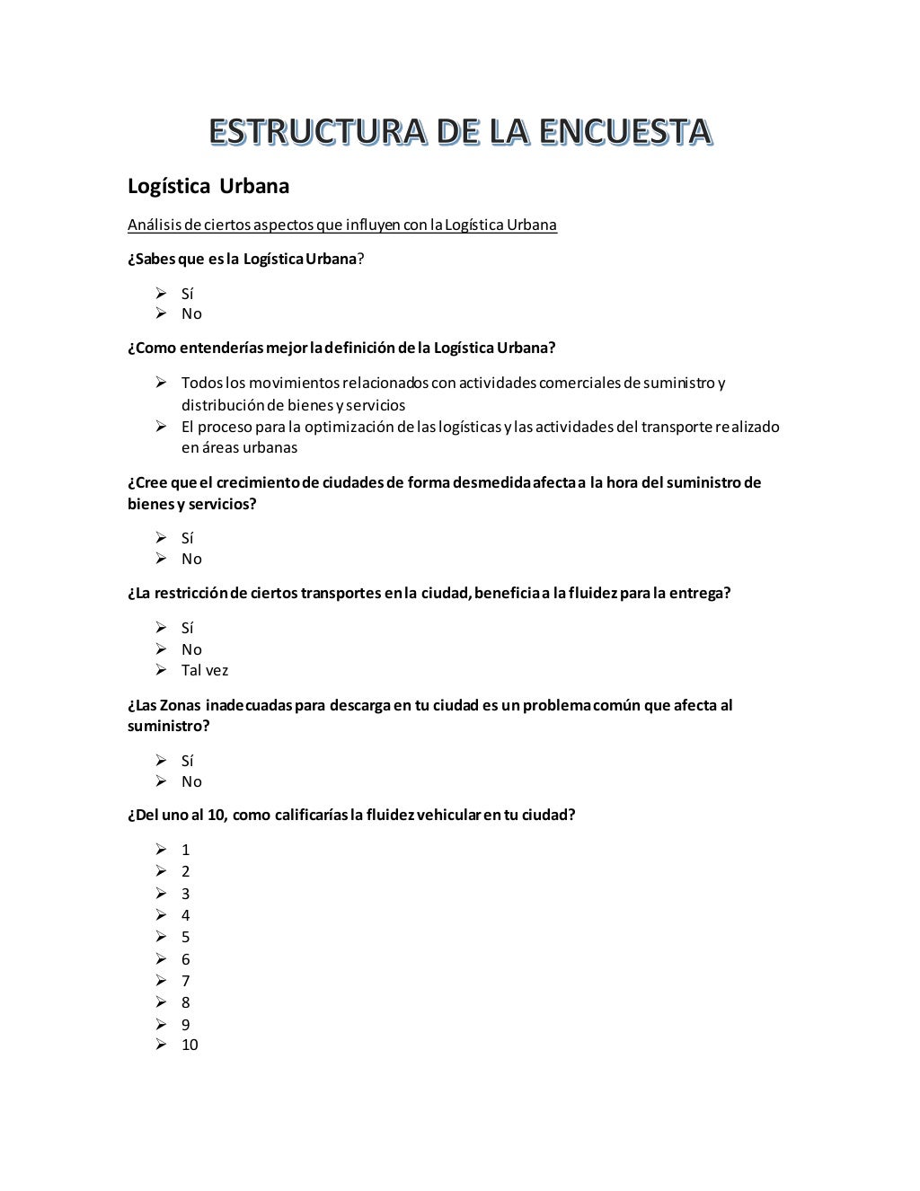 Cindi Castillo ESTRUCTURA DE LA ENCUESTA