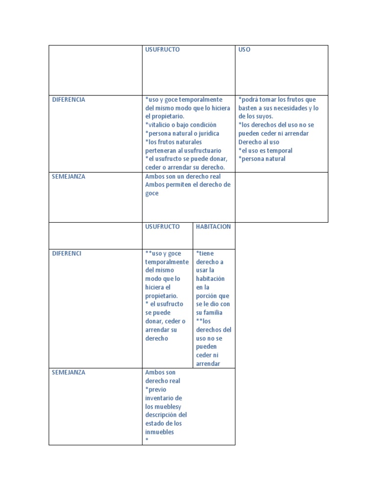 Cuadro Comparativo Diferencias Y Semejanzas Entre Usufructo Y Uso Porn Sex Picture