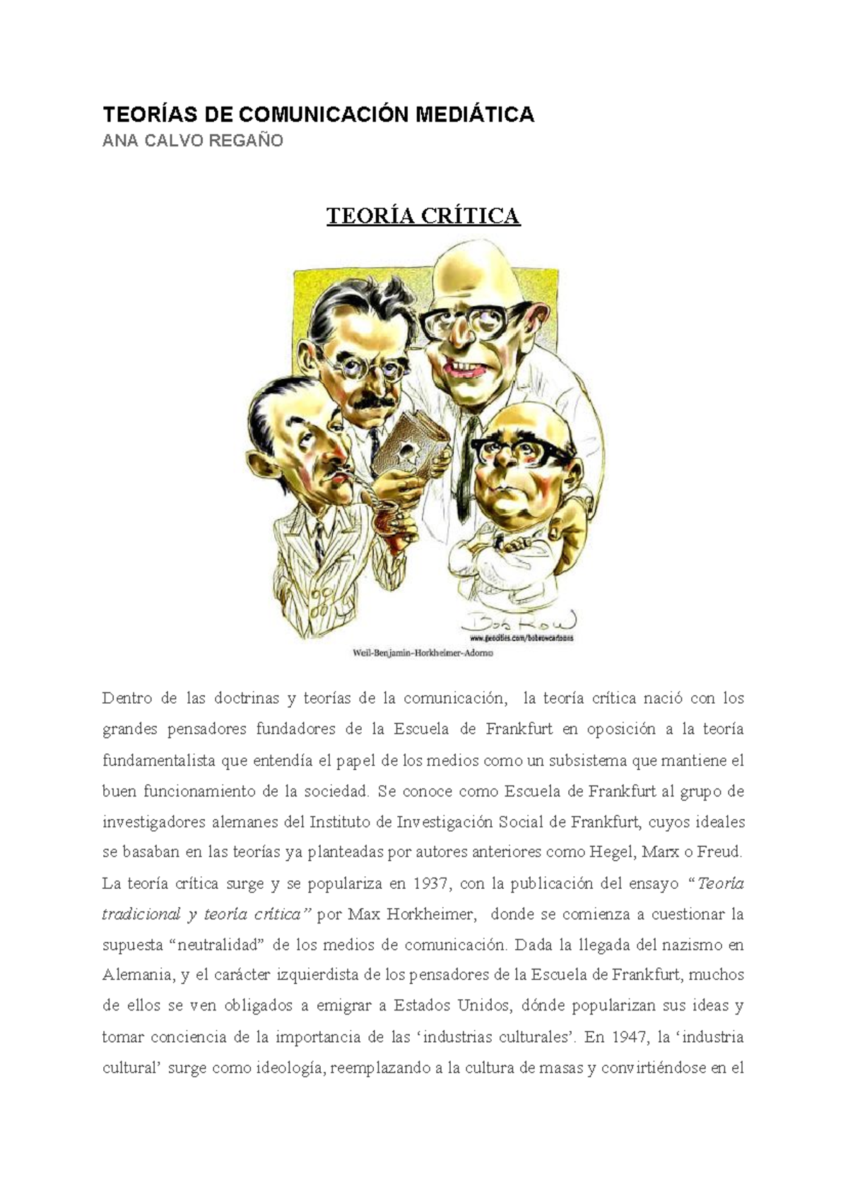 Trabajo Final TEORIAS DE COMUNICACION MEDIATICA TEORÍAS DE COMUNICACIÓN MEDIÁTICA ANA CALVO