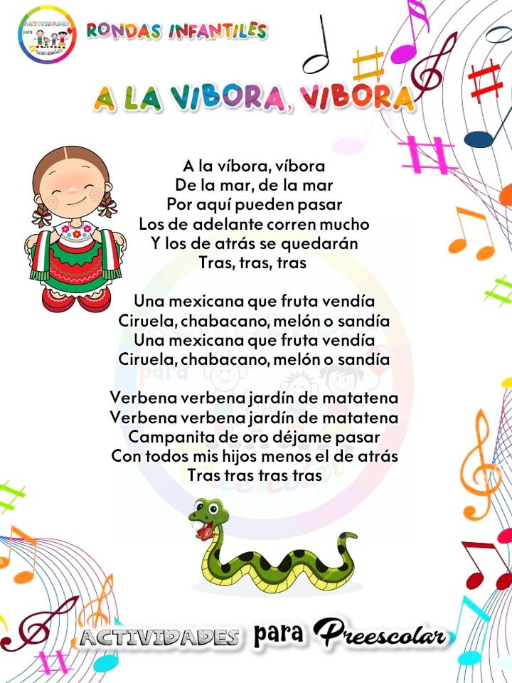 Ejemplos de Rondas Infantiles Cortas Letra. 1.1. "A la víbora de la mar": A la víbora, víbora de la mar, por aquí pueden pasar, los de adelante corren mucho, y los de atrás se quedarán. 1.2. "El patio de mi casa": El patio de mi casa es particular, cuando llueve se moja como los demás, agáchate y vuélvete a agachar, que los agachaditos no saben bailar.