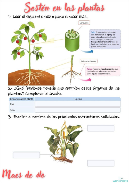 Sostén en las plantas. Ficha interactiva TopWorksheets