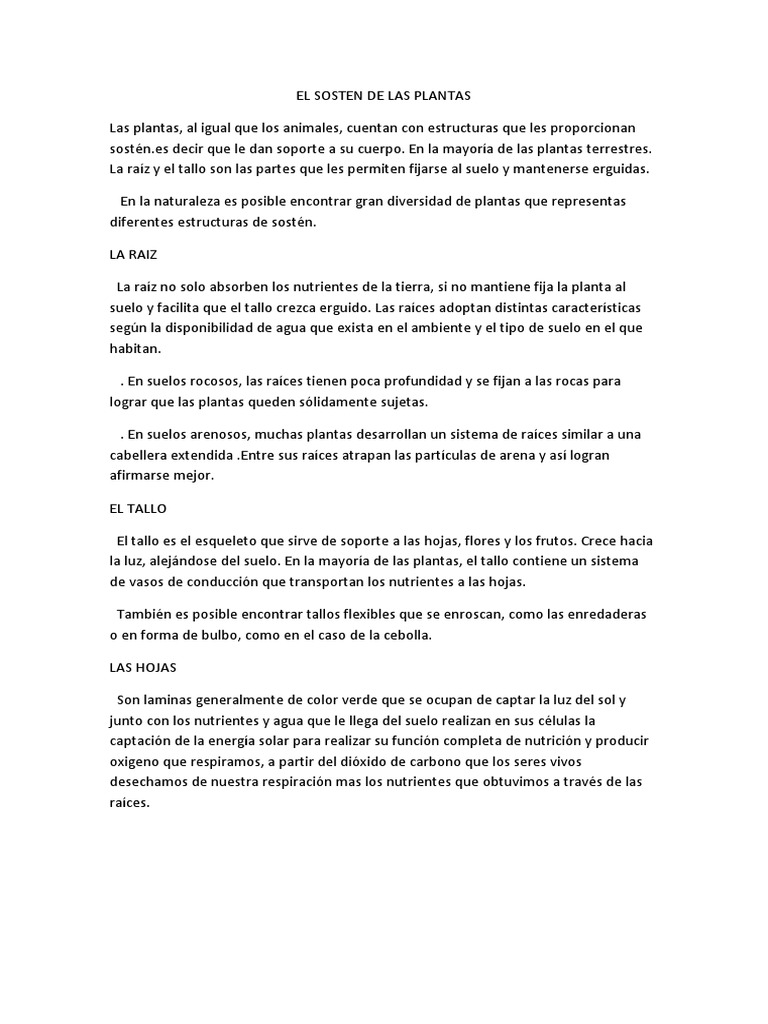 El Sosten de Las Plantas PDF Plantas Tallo de la planta