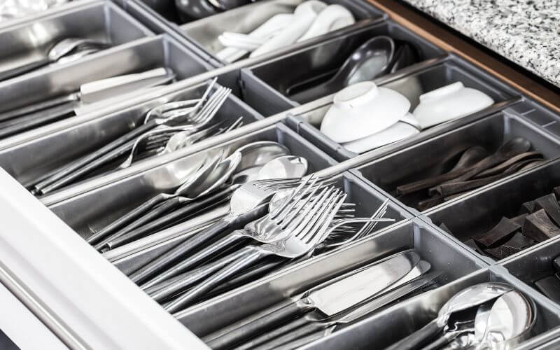 1- Elaboración de cubiertos y herramientas de cocina. Quizás el mayor de los usos cotidianos del aluminio es en la preparación y conservación de alimentos. Luego del acero inoxidable, es el material más usado para la elaboración de cuchillos, envases, ollas y demás implementos de cocina. El papel de aluminio consiste en láminas.