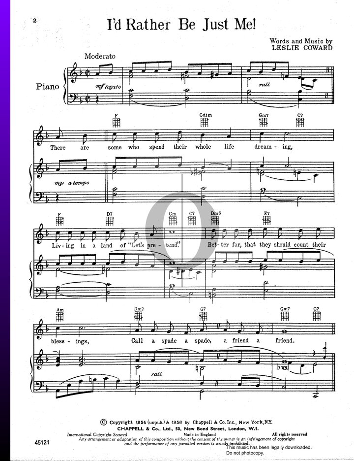 I'd Rather Be Just Me! Sheet Music (Piano, Guitar, Voice) OKTAV