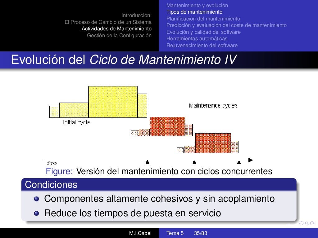 Mantenimiento y evolución del software. El software no se degrada ni necesita de un mantenimiento físico periódico, como otras obras de ingeniería civil o electrónica, sin embargo, el software está en continua evolución y el proceso de su mantenimiento puede ser muy difícil. Aquí se presentan las principales técnicas actuales apara.