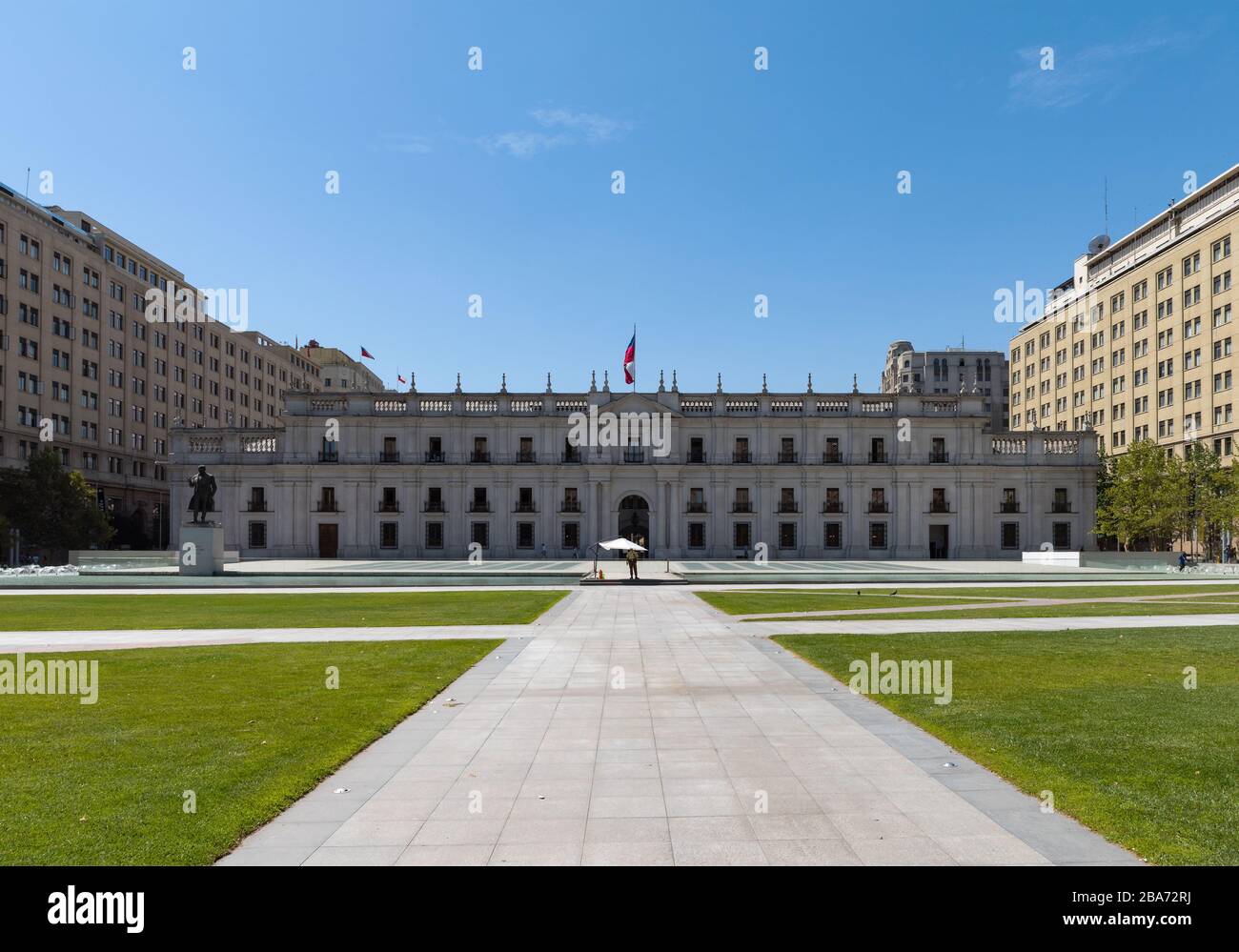 View of the Palacio de la Moneda the Chilean presidential palace in Santiago, Chile Stock Photo