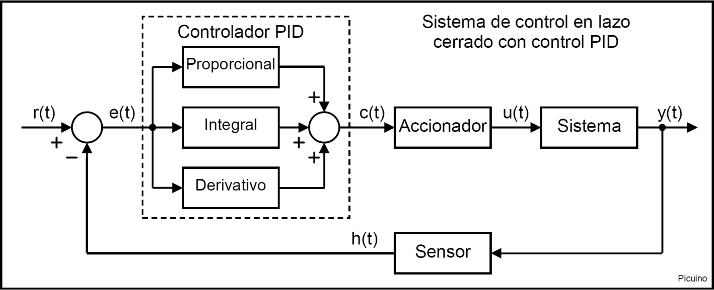 Controlador PID ¶. Controlador PID. Un controlador o regulador PID es un dispositivo que permite controlar un sistema en lazo cerrado para que alcance el estado de salida deseado. El controlador PID está compuesto de tres elementos que proporcionan una acción Proporcional, Integral y Derivativa.
