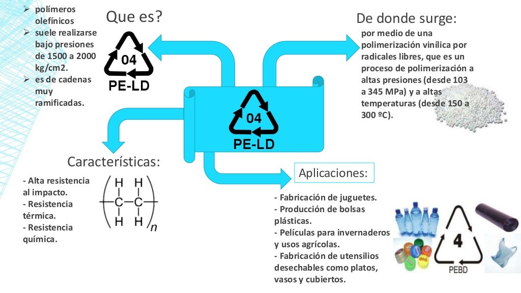 El polietileno de baja densidad o LDPE es un polímero termoplástico con una gran resistencia y flexibilidad y utilizado para la fabricación de numerosos productos. Qué es y cómo se obtiene. El polietileno de baja densidad es un polímero termoplástico de la familia de los olefínicos, formado por múltiples unidades de etileno. También es frecuente verlo nombrar por sus siglas en.