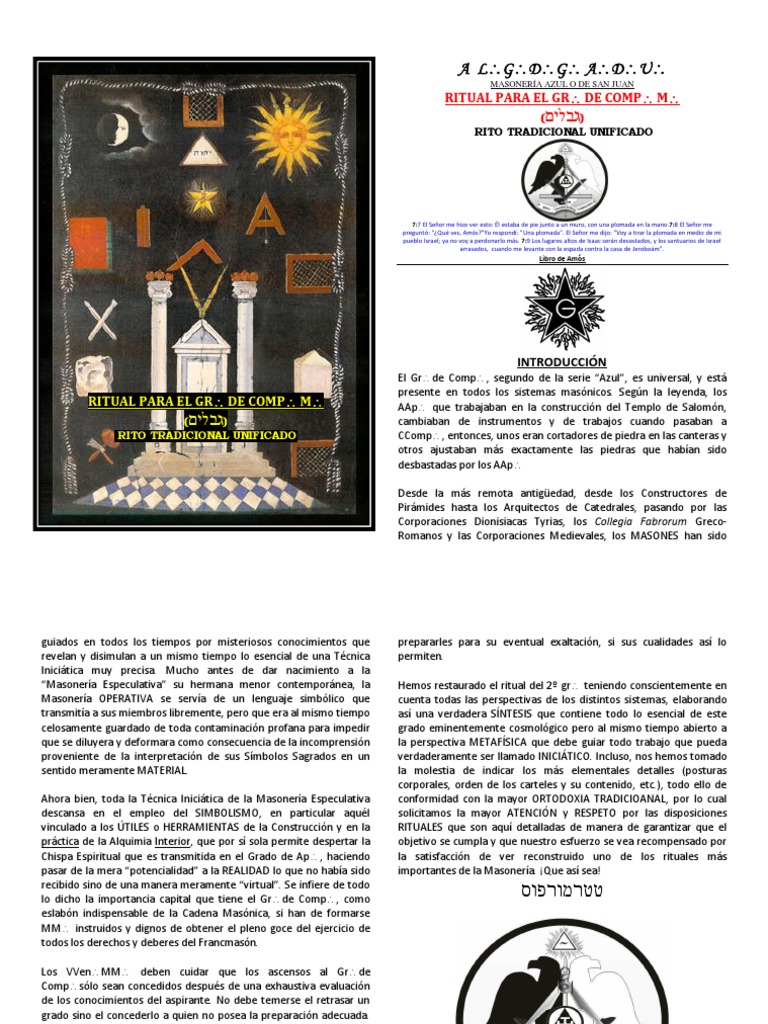 RITUAL DE COMPAÑERO MASÓN RITO TRADICIONAL UNIFICADO Masonería Sabor