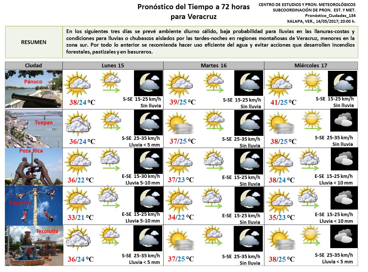 Secretaria de Protección Civil Veracruz Meteorología. Pronóstico del tiempo a 72 horas, 14 de