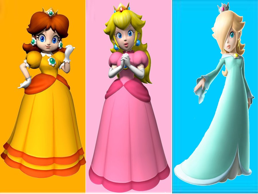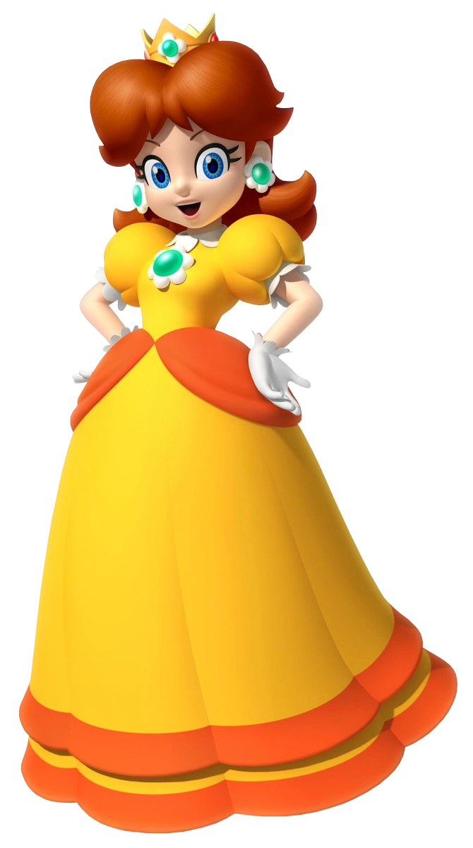 Princesa Daisy. Descrita em Super Mario Run como "a princesa alegre do Reino Sarasaland ", Daisy transformou-se de uma donzela de preto, branco e tons de cinza para a florida e durona moleca que vemos nos jogos de hoje. Flores são para Daisy o que cogumelos são para Peach, e refletem em seus adornos ao longo de vários jogos em que aparece.