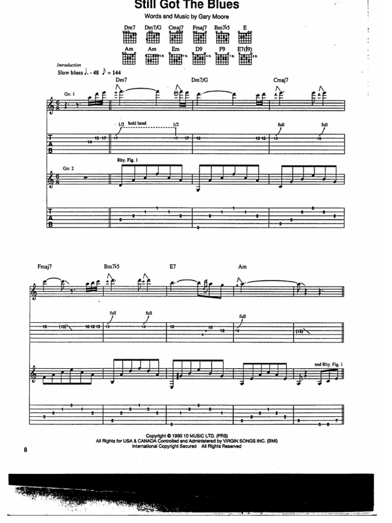 Create and get +5 IQ. GARY MOORE - Still Got The Blues [Intro] Dm7 F/G Cmaj7 Fmaj7 Bm7b5 E Am [Verse 1] Dm7 F/G Cmaj7 Fmaj7 Used to be so easy to give my heart away Bm7b5 E Am Bmadd4 Am/C Am But I've found that the hard way is a price you have to pay Dm7 F/G Cmaj7 Fmaj7 I found that love was no friend of mine Bm7b5 Esus4 E I should have known.