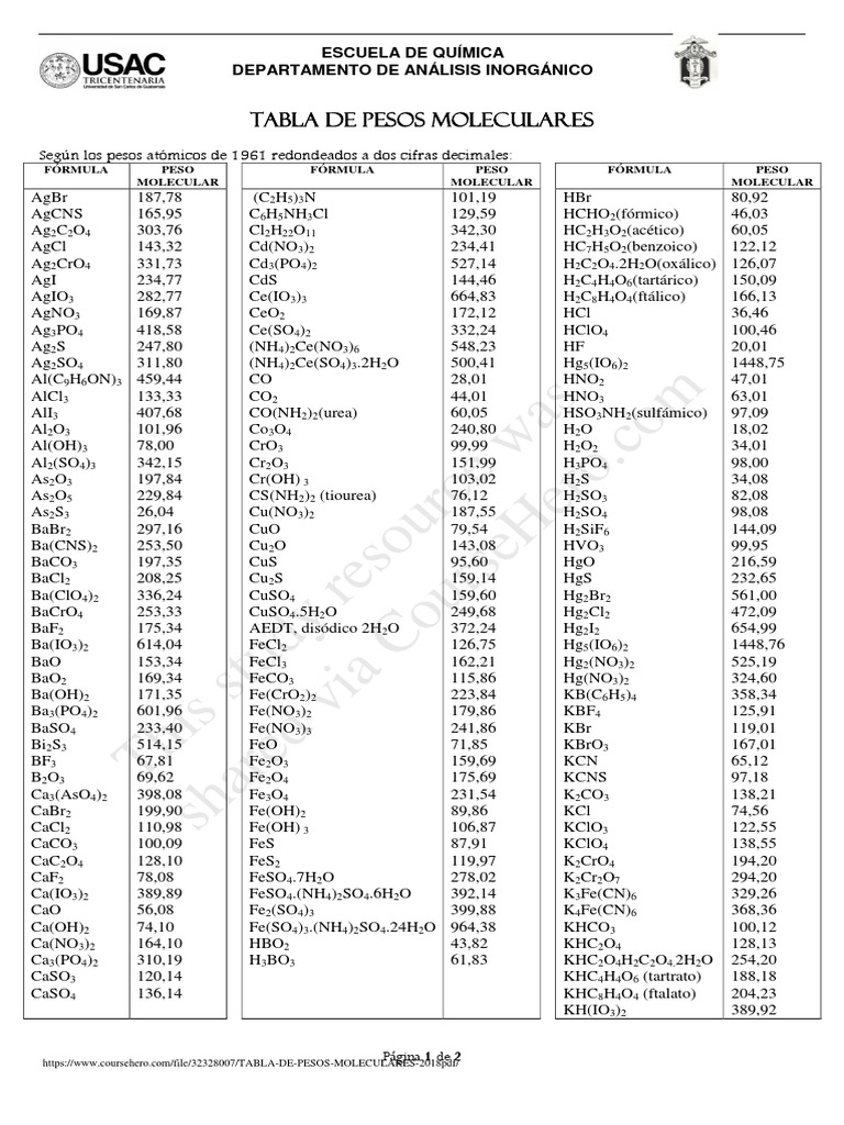 Tabla de Pesos Moleculares 2018 PDF PDF Ciencias fisicas Productos quimicos