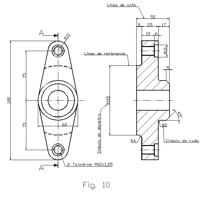 realizado por José Manuel García de Paredes. La acotación es el proceso de anotar, mediante líneas, cifras, signos y símbolos, las mediadas de un objeto, sobre un dibujo previo del mismo, siguiendo una serie de reglas y convencionalismos, establecidos mediante normas.